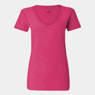 Take it easy in this classically casual v-neck 100% cotton slub jersey t-shirt.