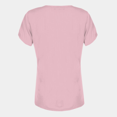 Jersey knit gives the v-neck tee a body-flattering fit.