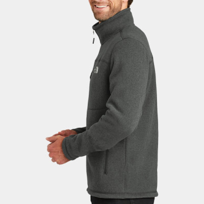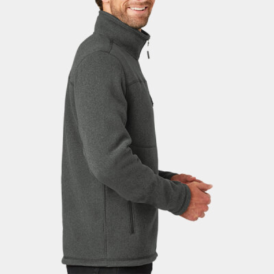 A soft, heathered tone adds casual appeal to the heavyweight, sweater-knit fleece jacket that's warm, yet breathable, on the trails.